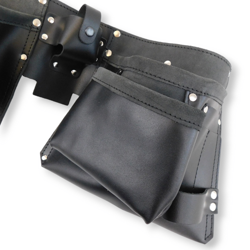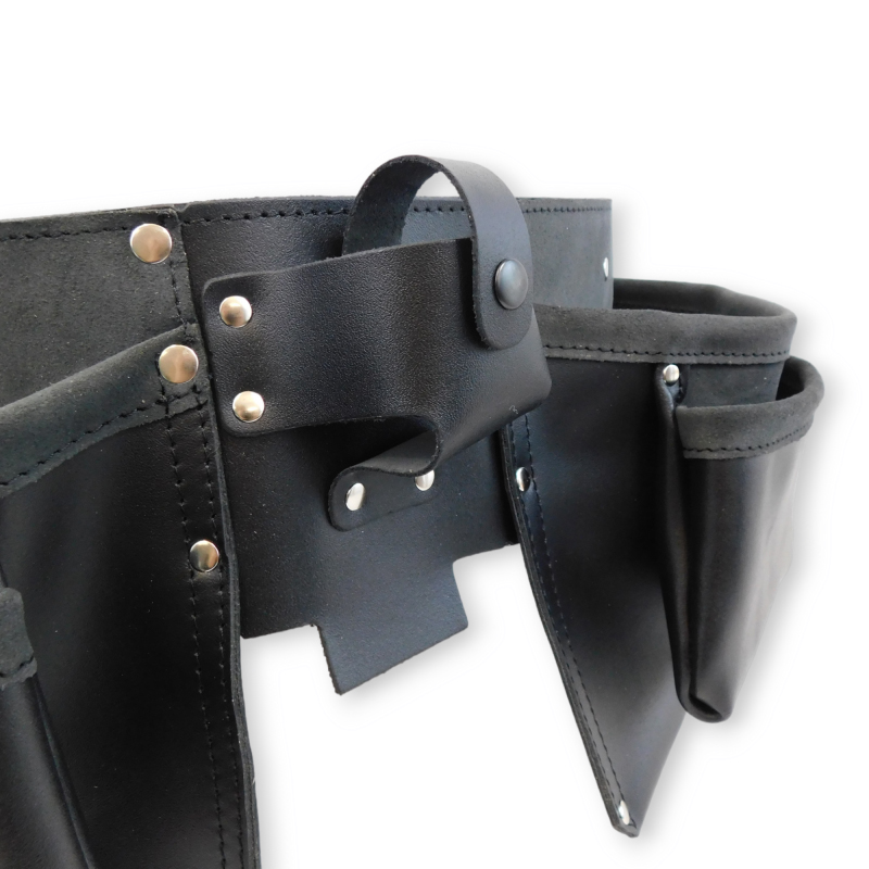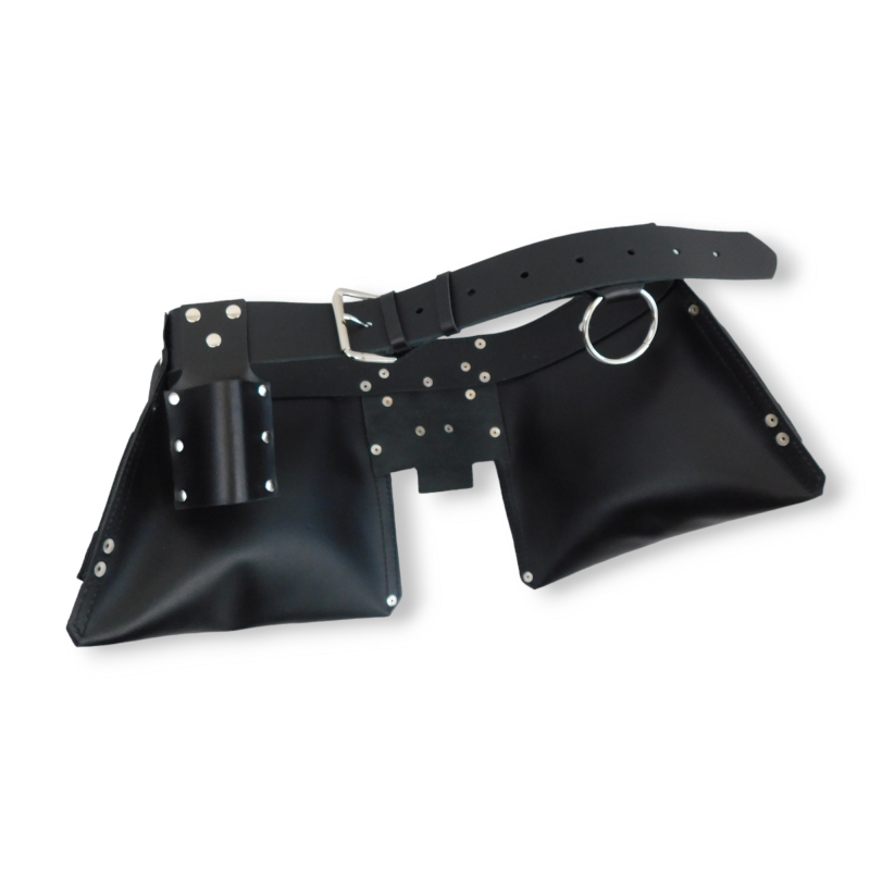 Pas monterski skórzany wykonany ze skóry bydlęcej o grubości 1,6 mm – 1,8 mm, w kolorze czarnym. Pas wyposażony jest w dużą ilość kieszeni na narzędzia oraz uchwyt na miarkę. Z jednej stron pasa są uchwyty na młotek. Kieszenie umieszczone na pasie skórzanym o szerokości 5 cm, z zapięciem w postaci metalowej klamry. Solidne wykonanie pasa sprawia, iż produkt jest często wybierany przez klientów. Produkt polski, całość wykonana ręcznie