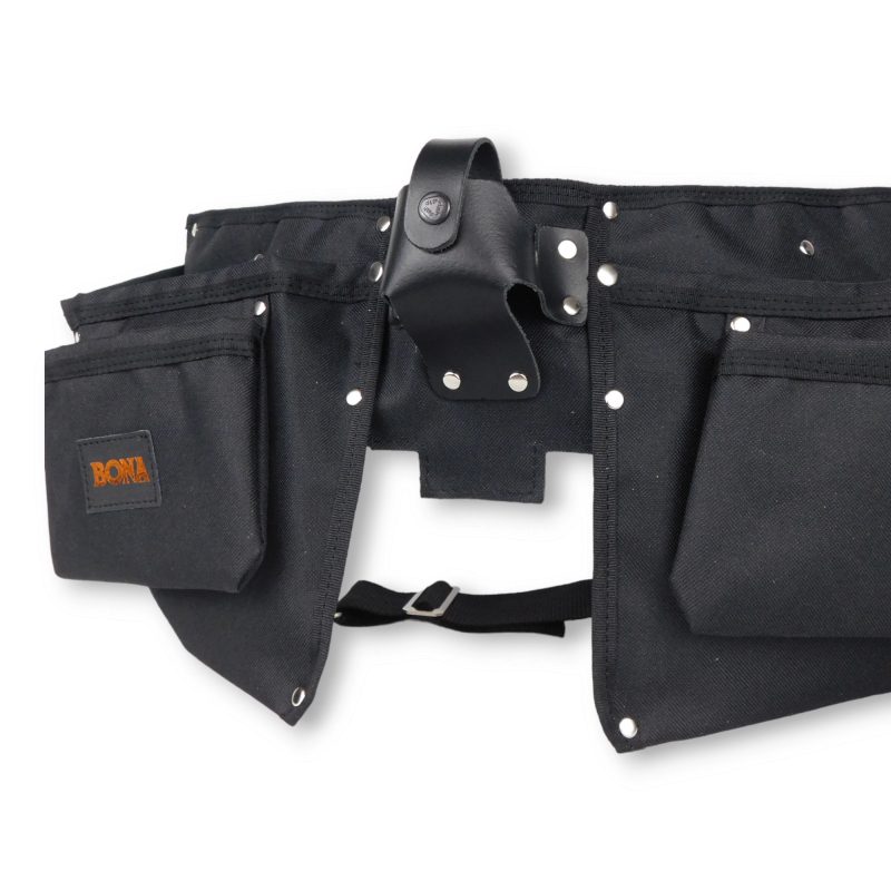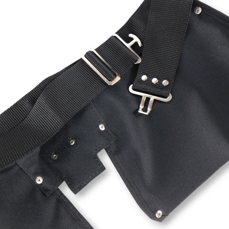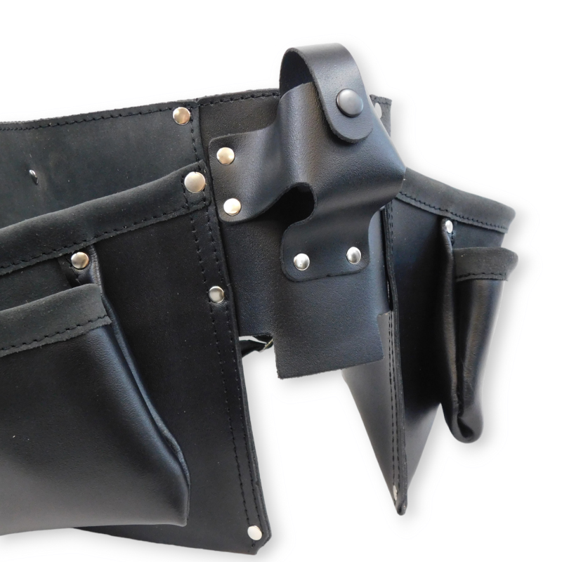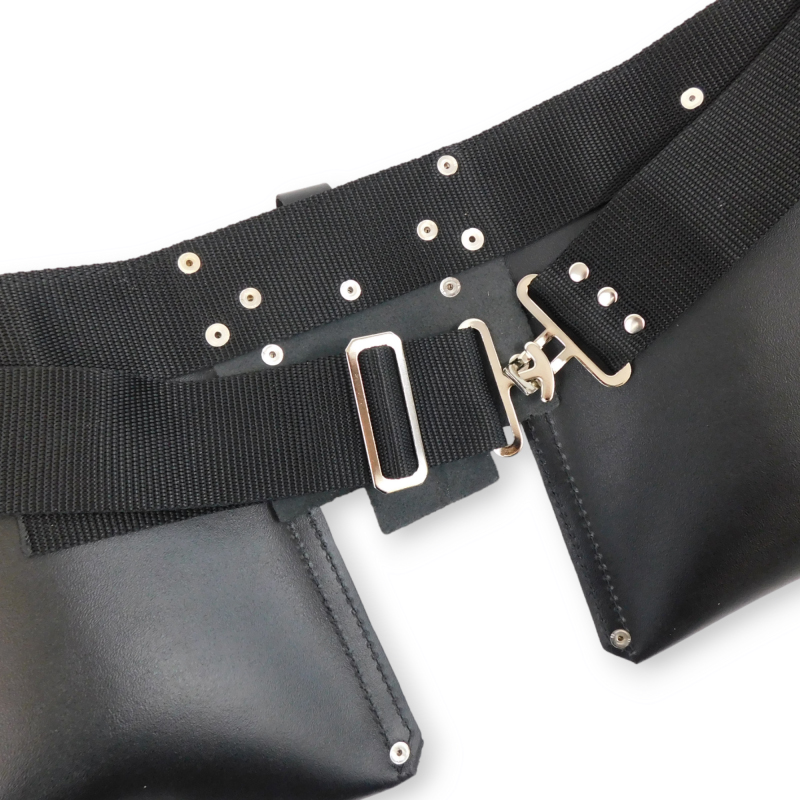 Pas monterski skórzany wykonany ze skóry bydlęcej o grubości 1,6 mm – 1,8 mm, w kolorze czarnym. Pas wyposażony jest w dużą ilość kieszeni na narzędzia oraz uchwyt na miarkę. Z jednej stron pasa są uchwyty na młotek. Kieszenie umieszczone na pasie parcianym o szerokości 5 cm, z zapięciem w postaci metalowej klamry. Solidne wykonanie pasa sprawia, iż produkt jest często wybierany przez klientów. Produkt polski, całość wykonana ręcznie